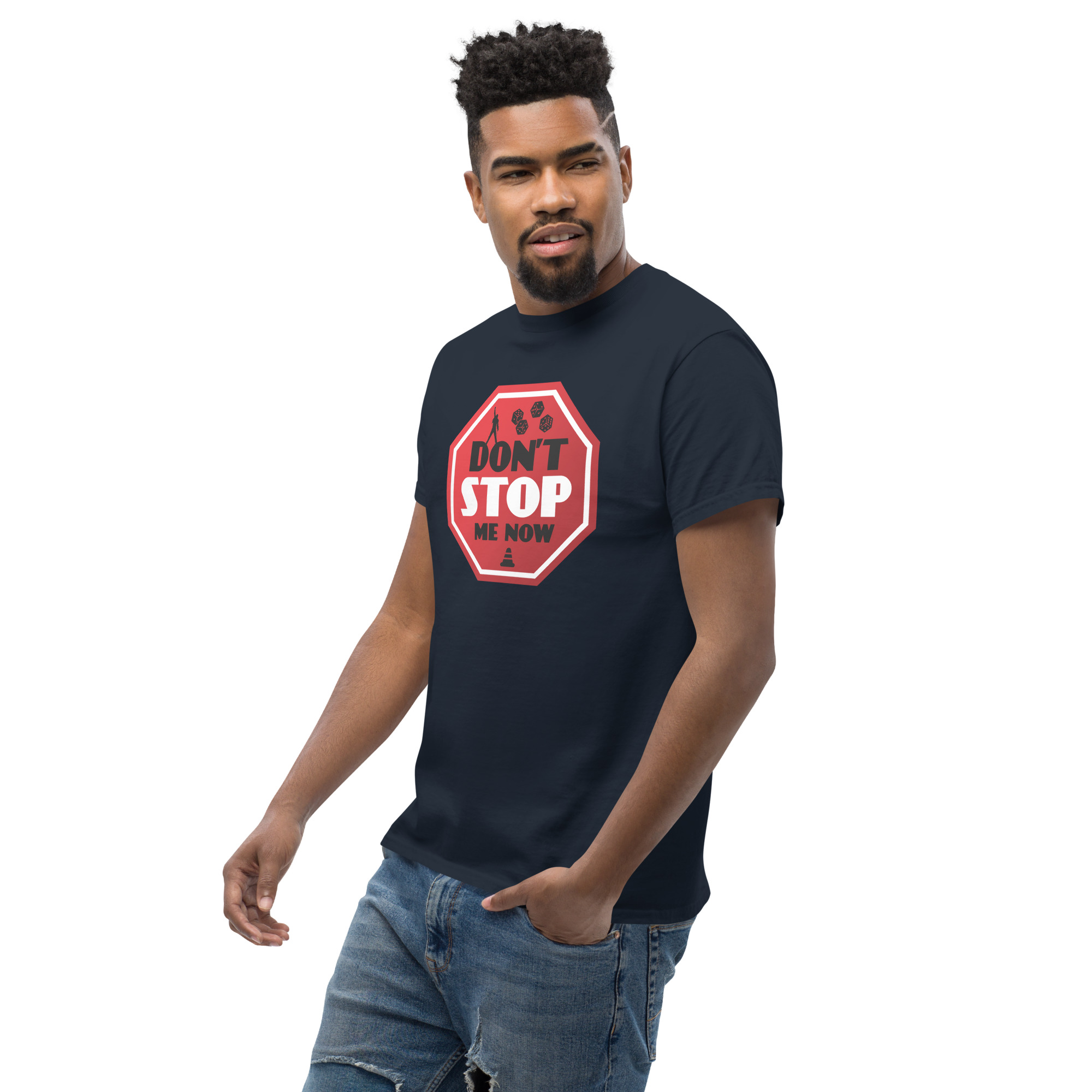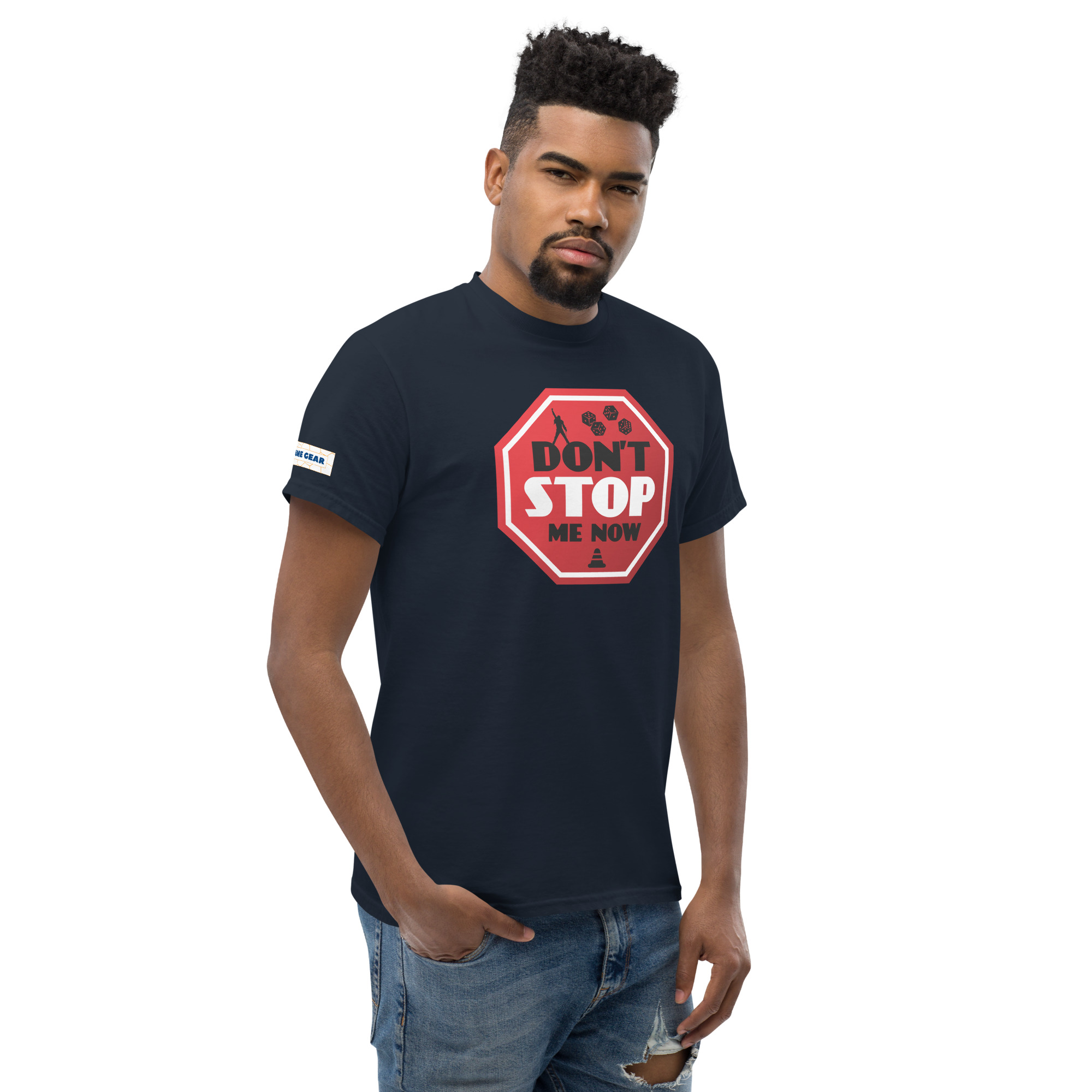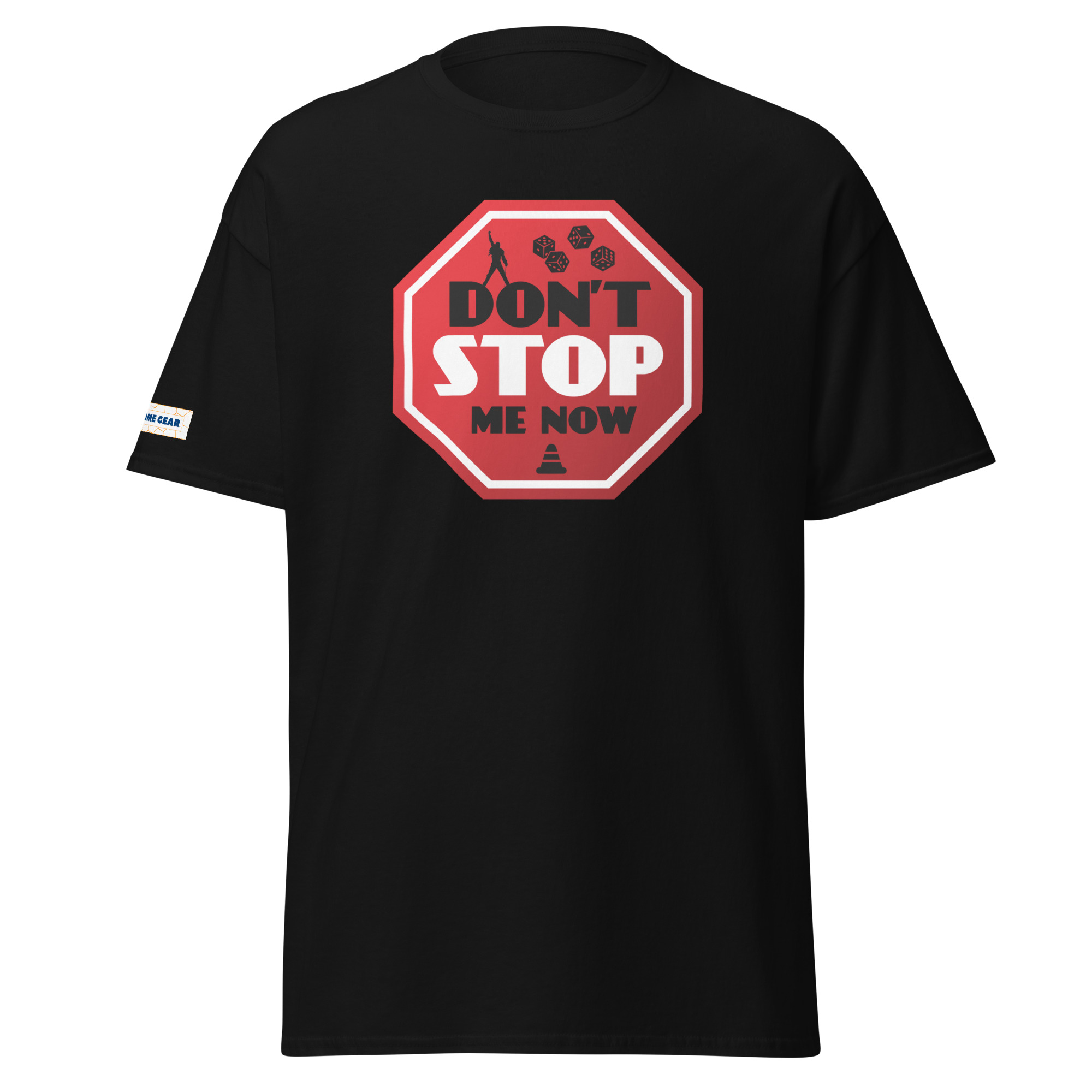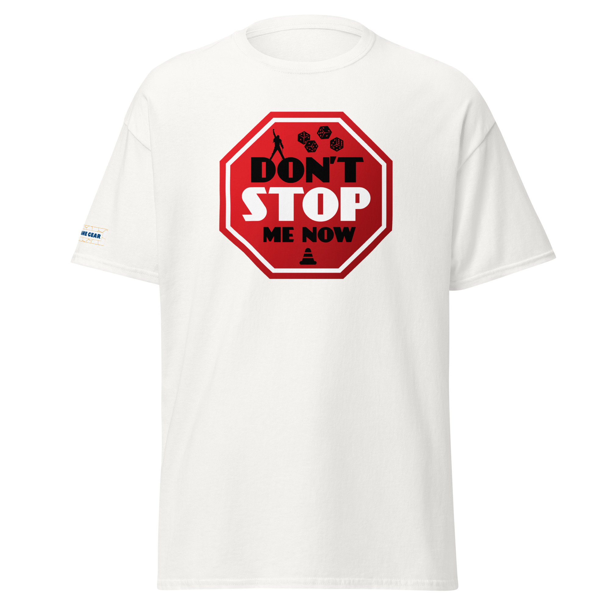 This Can’t Stop board game t-shirt celebrates dice-pushing tension, risk-taking, and the thrill of pressing your luck one roll too far. This t-shirt brings together the excitement of dice rolling and the iconic energy of the hit song “Don’t Stop Me Now.” The bold stop sign design, paired with dice and gaming elements, perfectly captures the tension of the game Can’t Stop. Whether you’re on a winning streak or just love a nod to classic rock, this tee is sure to turn heads and spark conversations at your next game night.